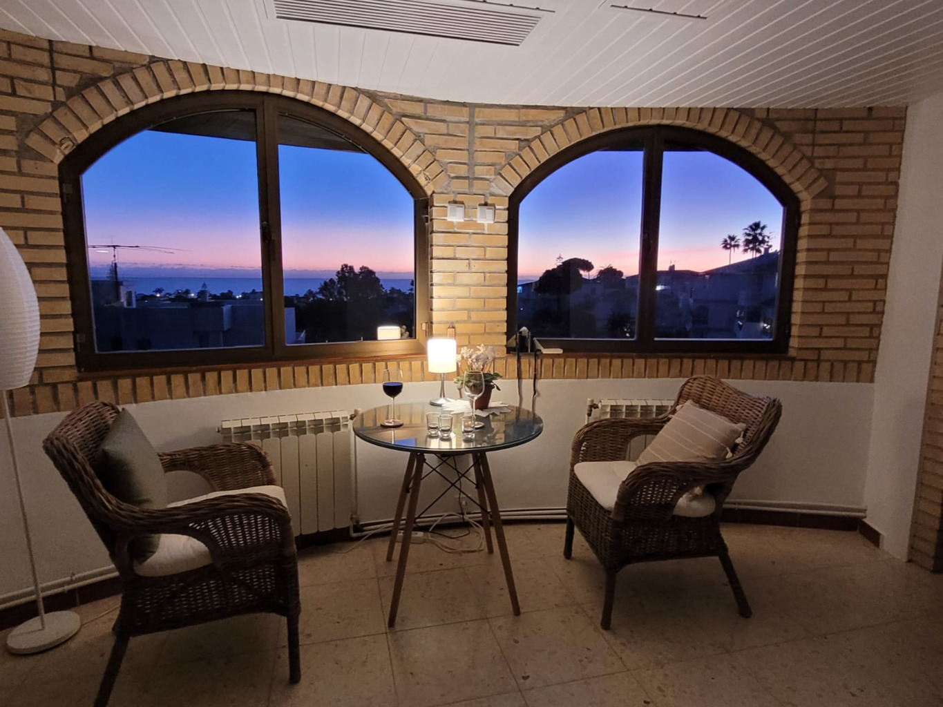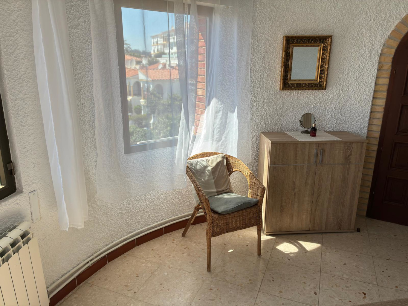 Großer Balkon mit Meerblick und Sonne von morgens bis abends. Sonnenbaden auf den beiden Aussichtstürmen mit je 21 qm Fläche. Freier Rundblick von den Bergen über die grüne Feriensiedlung bis zum Meer. Zugang zu den Türmen über eine Marmortreppe und eine Wendeltreppe. Für die Außenbereiche stehen Tische, Stühle, Liegen, Auflagen und Sonnenschirme in ausreichender Zahl bereit.
