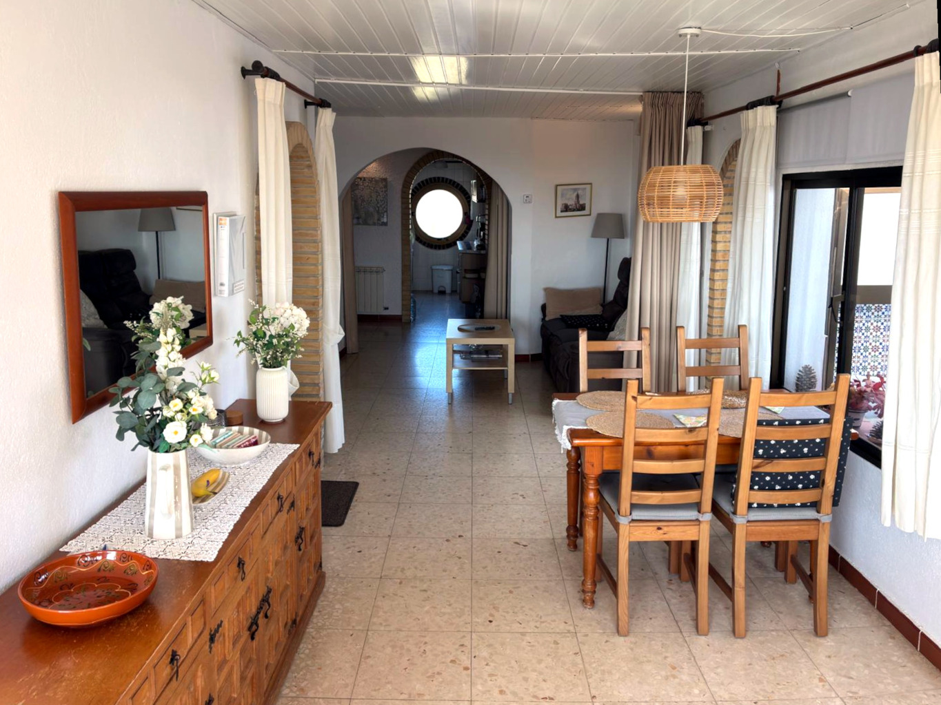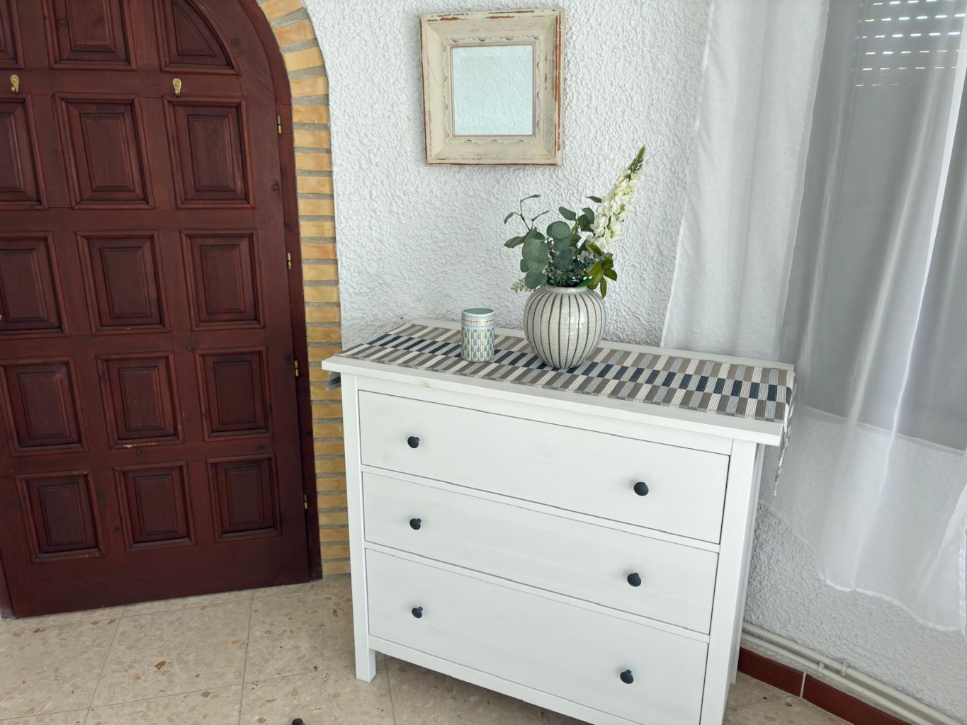 Die Ferienwohnung ist komplett ausgestattet: Herd mit Backofen und vier Kochfeldern, Dunstabzugshaube, Kühlschrank mit Gefrierfach, Toaster, Mikrowelle, Wasserkocher, Kaffeemaschine, Geschirrspüler, Spüle sowie Töpfe, Pfannen, Geschirr und Besteck. Alle Fußböden in Terrazzo, pflegeleicht und hygienisch. Betten mit stabilen Federkernmatratzen und Kissen. Zwei von vier Betten mit elektrisch verstellbaren Kopfteil. Bettwäsche, Geschirrtücher, Handtücher, Badetücher, Föhn, Waschmaschine, Wäscheständer, Bügeleisen und Bügelbrett sind vorhanden. Für Ihre Sicherheit auch Rauchmelder, Feuerlöscher und Verbandskasten. Außerdem LCD-TV mit Sat-Receiver sowie kostenfreies schnelles WLAN mit 100 MBit/s. Moderne Warmwasserheizung für etwas kühlere Wintertage (die Temperaturen fallen in El Faro nur selten unter +12°C). Alle Fenster in den Schlafzimmern sowie die beiden Südfenster im Wohnzimmer haben elektrische Rollläden. Insektenschutz an je einem Schlafzimmerfenster. Alle Räume sind mit stromsparenden LED-Lampen ausgerüstet. Auf Wunsch: Klimaanlage gegen Aufpreis gemäß Preisliste.
